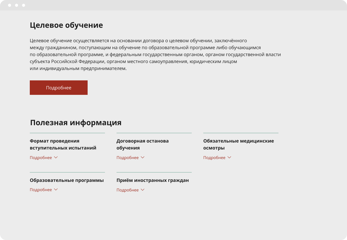- Мы обеспечили привлекательный дизайн блока, который будет соответствовать бренду университета и привлекать внимание потенциальных абитуриентов.